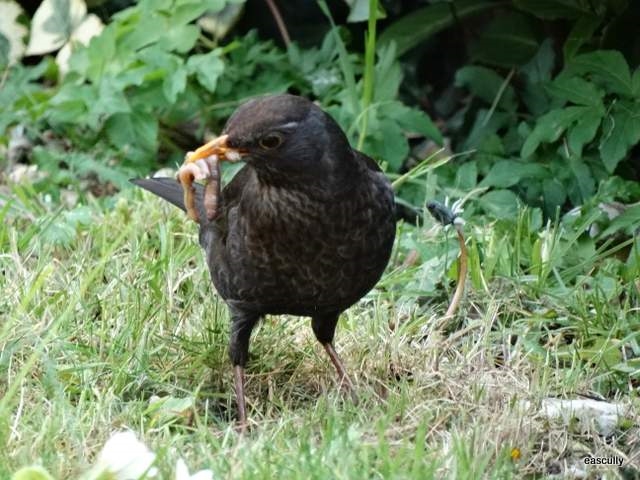 A blackbird collects worms to feed young (Elizabeth Scully)