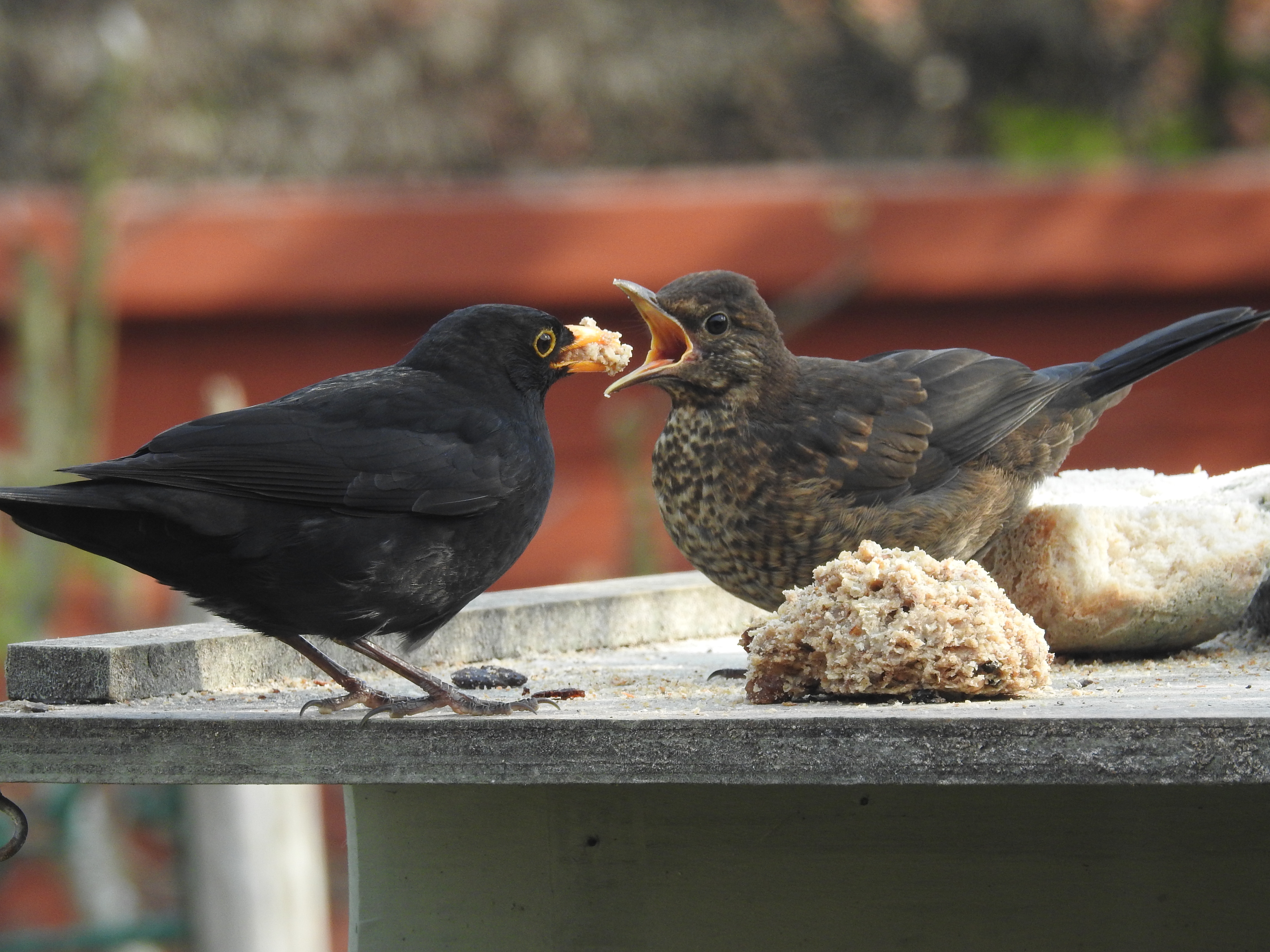 Male blackbird feeding young (Joan Smith)