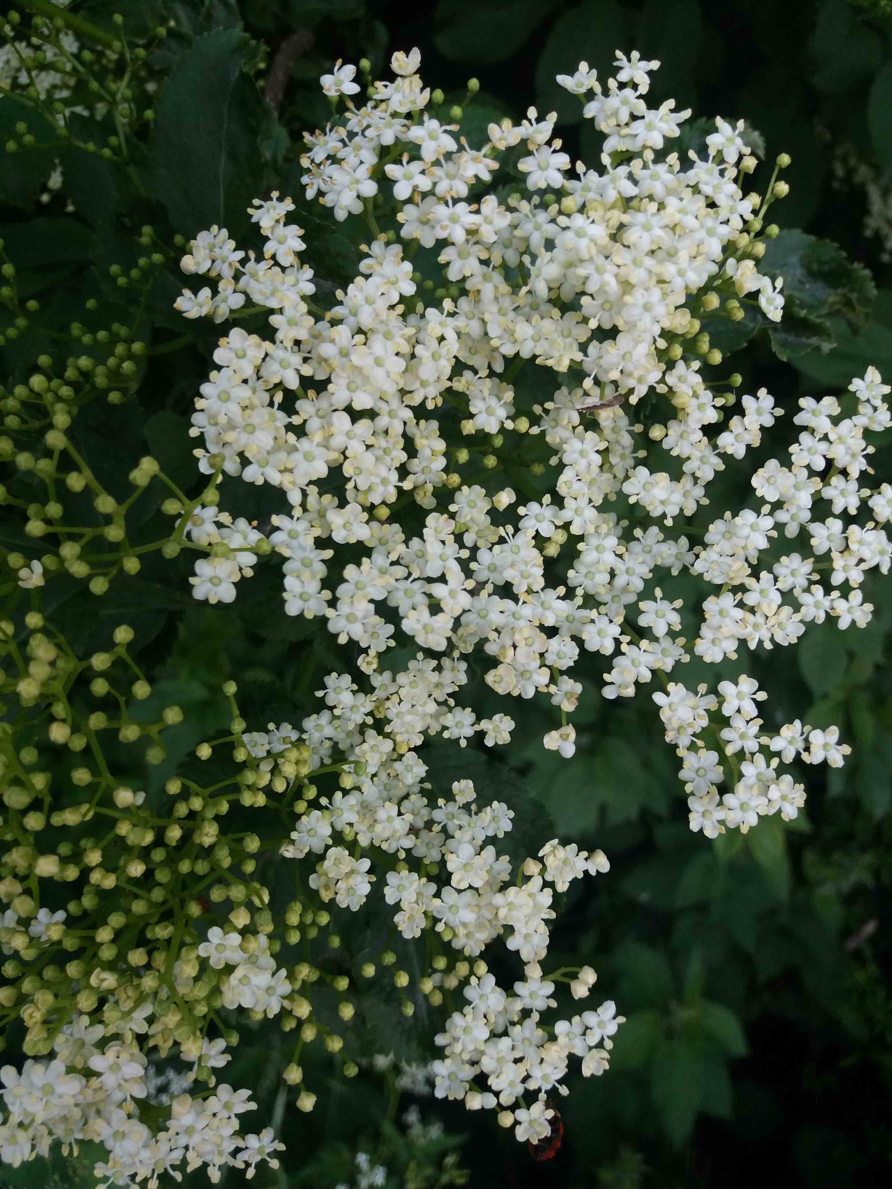 Record elder first flowering when the petals of the first individual flower in a cluster are open sufficiently for you to see inside the flower.